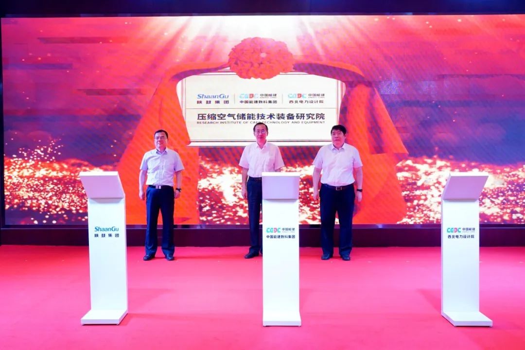 會上,由中國能建數(shù)科集團、中國能建中電工程西北院及陜鼓集團三方共同設(shè)立的“壓縮空氣儲能技術(shù)裝備研究院”正式成立。