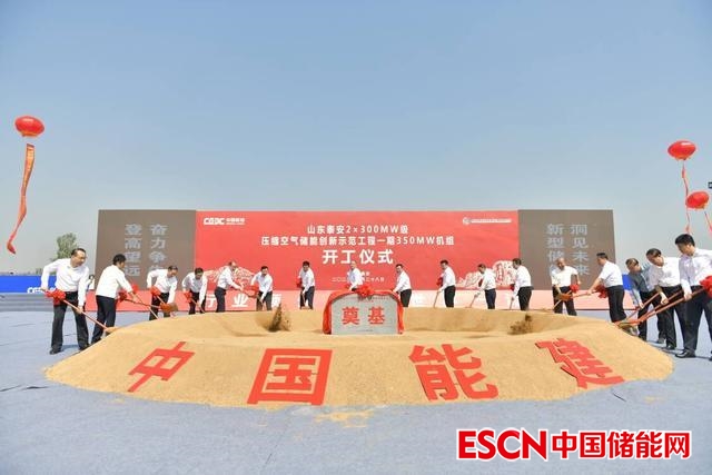 中國儲能網(wǎng)訊:9月28日,山東泰安2×300兆瓦級壓縮空氣儲能創(chuàng)新示范工程舉行開工儀式。據(jù)悉,該項目一期工程建設(shè)一臺350兆瓦機組,采用全球首創(chuàng)低熔點熔融鹽高溫絕熱壓縮技術(shù)。