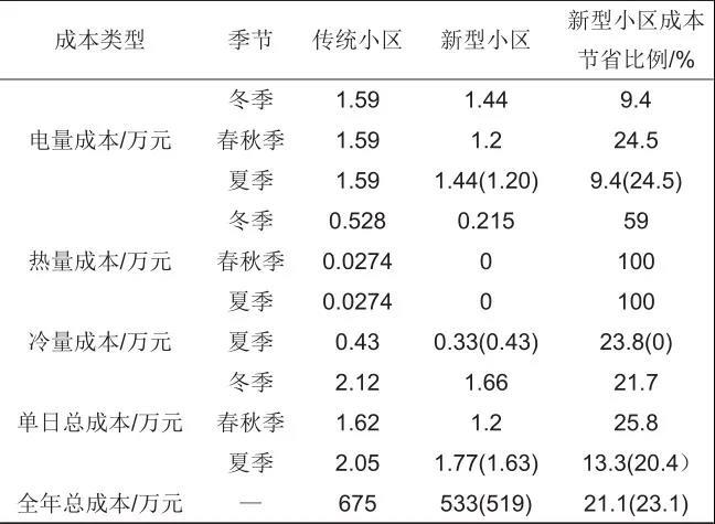 表4 常規(guī)供能小區(qū)與新型小區(qū)供能成本對比