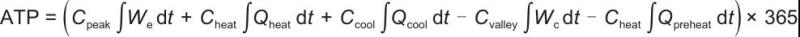 該系統(tǒng)成本分兩部分:運行成本即壓縮機耗電電費和系統(tǒng)內(nèi)各設(shè)備成本。收益則來自三部分:膨脹機產(chǎn)電的電費,壓縮階段產(chǎn)熱的熱量價值以及膨脹階段產(chǎn)冷的冷量價值。系統(tǒng)年總利潤(ATP)計算式如下