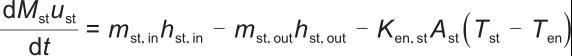 式中,Mst為儲罐內(nèi)氣體質(zhì)量;ust為氣體單位質(zhì)量內(nèi)能;mst,in為進入儲罐的氣體流量;mst,out為出儲罐的氣體流量;hst,in為入儲罐的氣體焓值;hst,out為出儲罐的氣體焓值;Ken,st為儲罐和環(huán)境的傳熱系數(shù);Ast為儲罐和環(huán)境換熱的表面積;Tst與Ten為儲罐溫度和環(huán)境溫度。