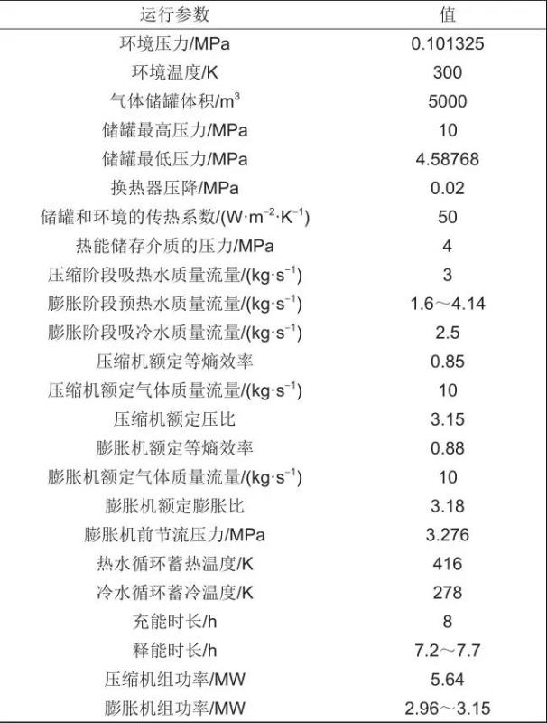 表1 絕熱壓縮空氣儲能系統(tǒng)運行參數(shù)