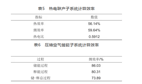對(duì)該組熱電聯(lián)產(chǎn)機(jī)組進(jìn)行熱電解耦時(shí),機(jī)組處于額定采暖工況運(yùn)行,改變儲(chǔ)能子系統(tǒng)各部件的參數(shù),得到其對(duì)整個(gè)新型集成系統(tǒng)的影響規(guī)律。其中,熱電聯(lián)產(chǎn)機(jī)組單獨(dú)運(yùn)行時(shí),熱效率、?效率和熱電比計(jì)算結(jié)果見表5,壓縮空氣儲(chǔ)能子系統(tǒng)單獨(dú)運(yùn)行?效率計(jì)算結(jié)果見表6。
