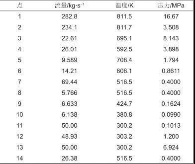 基于上述各子系統(tǒng)的主要技術(shù)參數(shù)建立新型耦合系統(tǒng)的計(jì)算模型,模擬得出新型集成系統(tǒng)在各個(gè)抽汽點(diǎn)和主要點(diǎn)處的蒸汽參數(shù),將其列在表4中。
