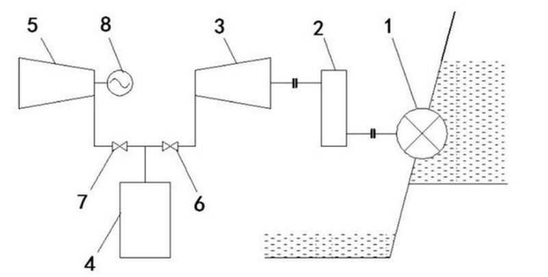 近日,國家知識(shí)產(chǎn)權(quán)局公布專利“一種水力壓縮空氣儲(chǔ)能系統(tǒng)”。該水力壓縮空氣儲(chǔ)能系統(tǒng)包括依次連接的水輪機(jī)組、變速器、空氣壓縮機(jī)組、儲(chǔ)氣庫、空氣透平機(jī)組和發(fā)電機(jī)。