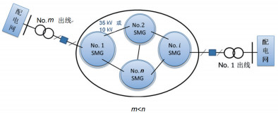n個(n>1)智能微電網由不高于110 kV電壓等級線路聯(lián)接成的統(tǒng)一智能電網稱為智能微電網群;若該微電網有m個端點與外部配電網聯(lián)接,應遵循條件m<n(圖 3)。