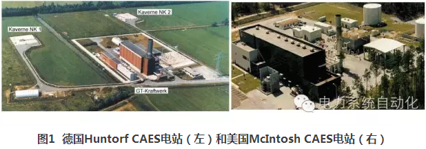 壓縮空氣儲(chǔ)能(compressedairenergystorage,CAES)對(duì)地理?xiàng)l件無特殊要求,建造成本和響應(yīng)速度與抽水蓄能電站相當(dāng),使用壽命長(zhǎng),儲(chǔ)能容量大,是一種具有推廣應(yīng)用前景的大規(guī)模儲(chǔ)能技術(shù)。國(guó)外已有兩座大型CAES電站分別在美國(guó)和德國(guó)(如圖1所示)投入商業(yè)運(yùn)行,多座電站正在建設(shè)之中。此外,多家研究機(jī)構(gòu)及公司開展了該方面的研究,提出了許多創(chuàng)新性的CAES系統(tǒng)技術(shù)方案。