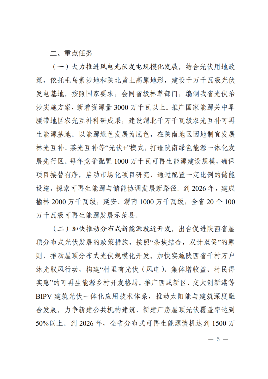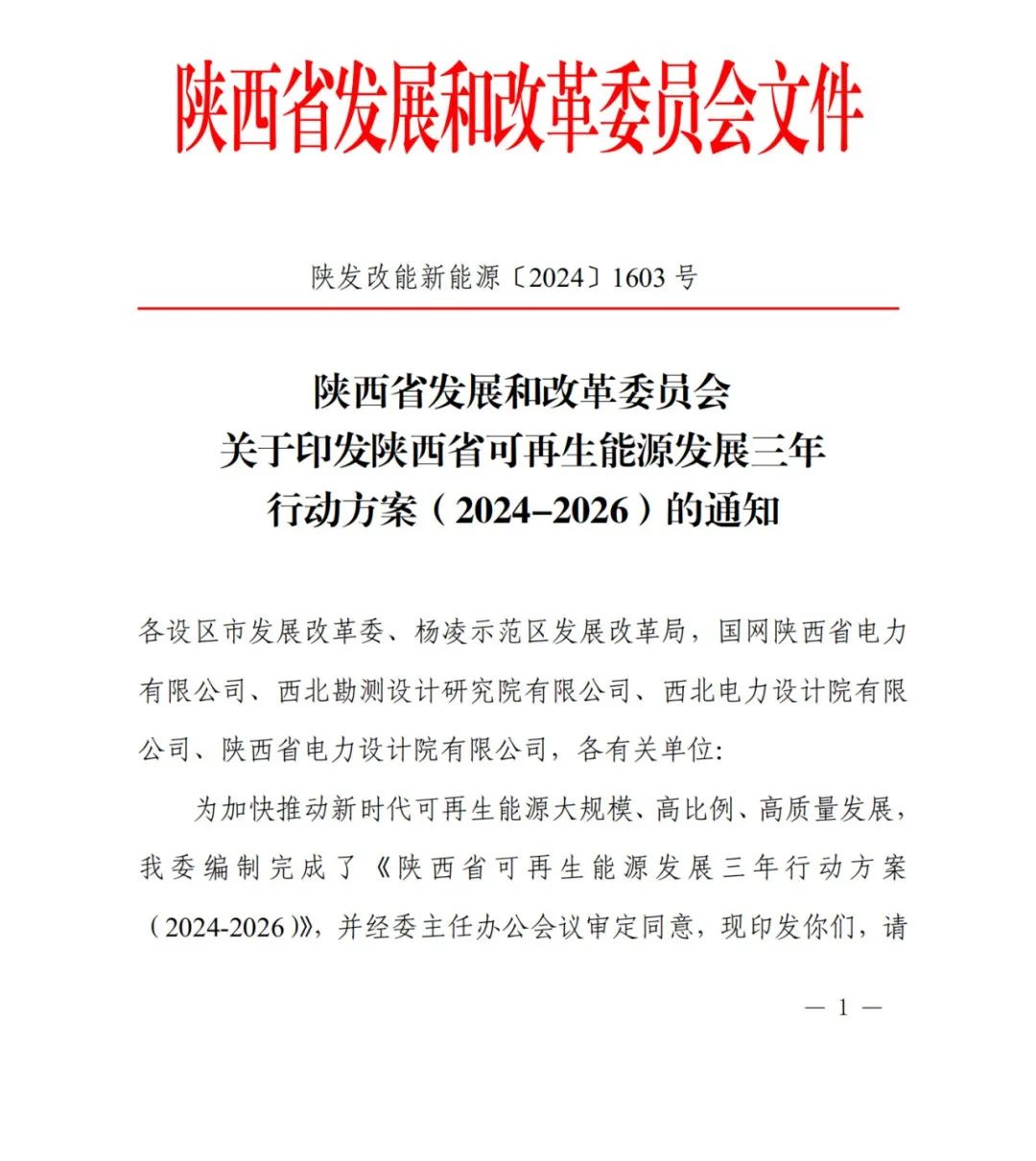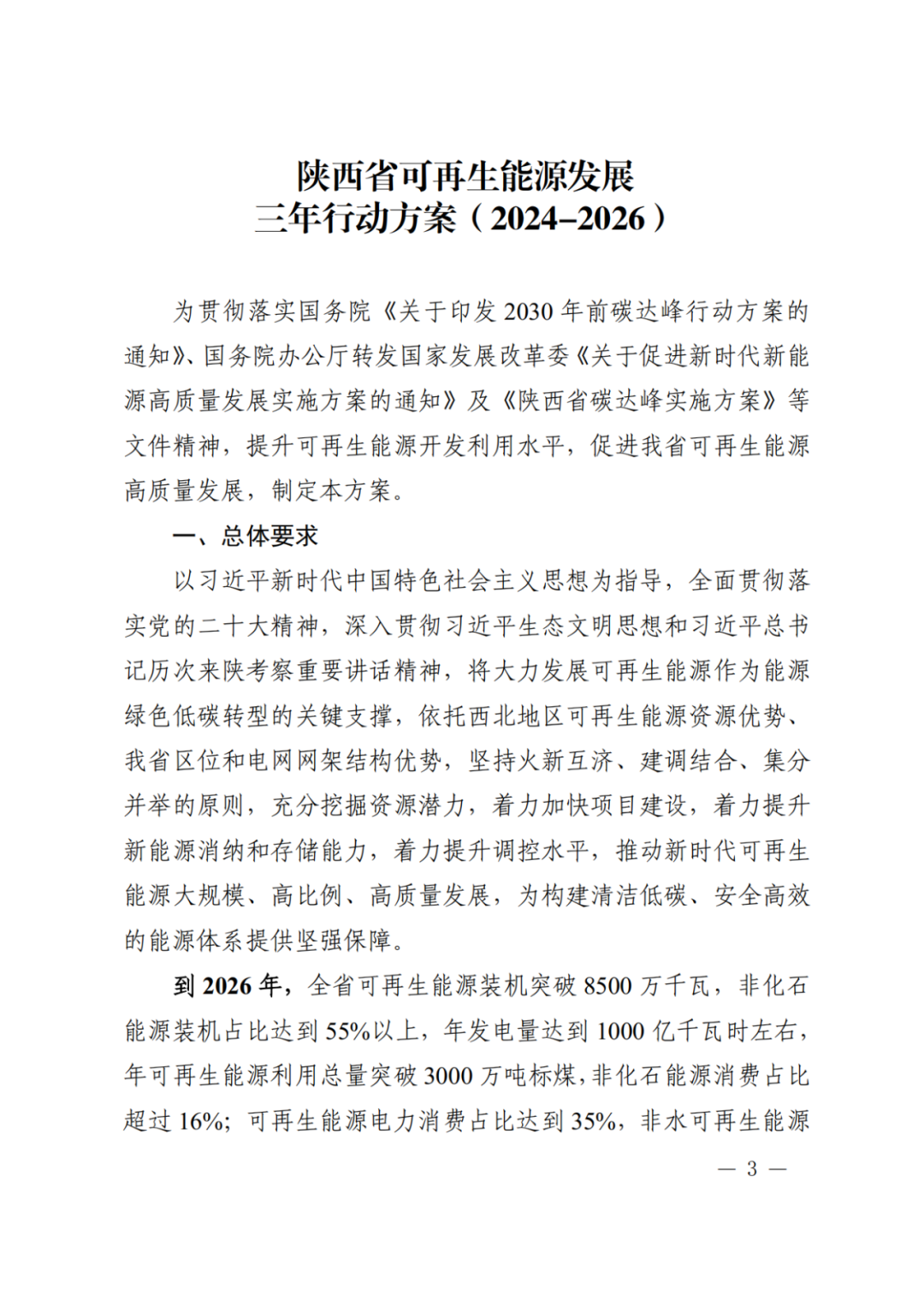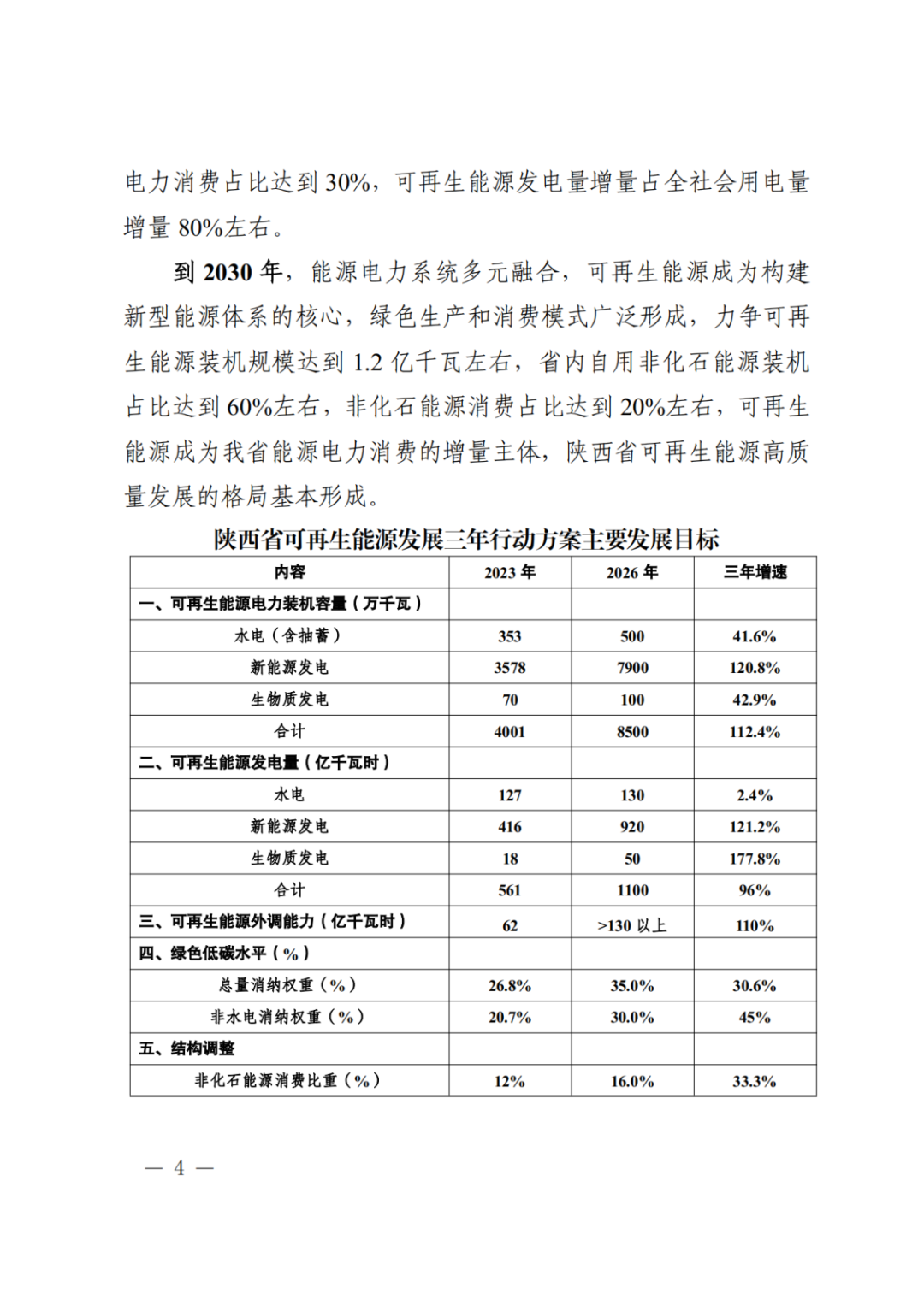 中國儲能網(wǎng)訊:日前,陜西省發(fā)改委印發(fā)《關(guān)于印發(fā)陜西省可再生能源發(fā)展三年行動方案(2024—2026)的通知》,初步規(guī)劃預(yù)計到2026年省內(nèi)新能源裝機(jī)規(guī)模達(dá)79GW,增速120.8%。