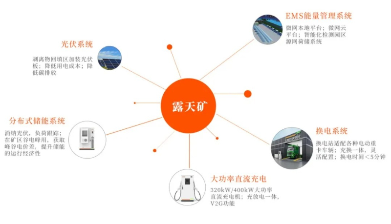 結合光伏發(fā)電、分布式儲能系統(tǒng)充放電,可滿足園區(qū)電動車輛的用電需求,降低電動汽車充電成本,打造零碳礦區(qū);通過EMS能量管理系統(tǒng)可實現(xiàn)光伏+儲能+充電+換電的協(xié)同運行,通過消納光伏和負荷跟蹤,最大化提升系統(tǒng)運行的經(jīng)濟性。