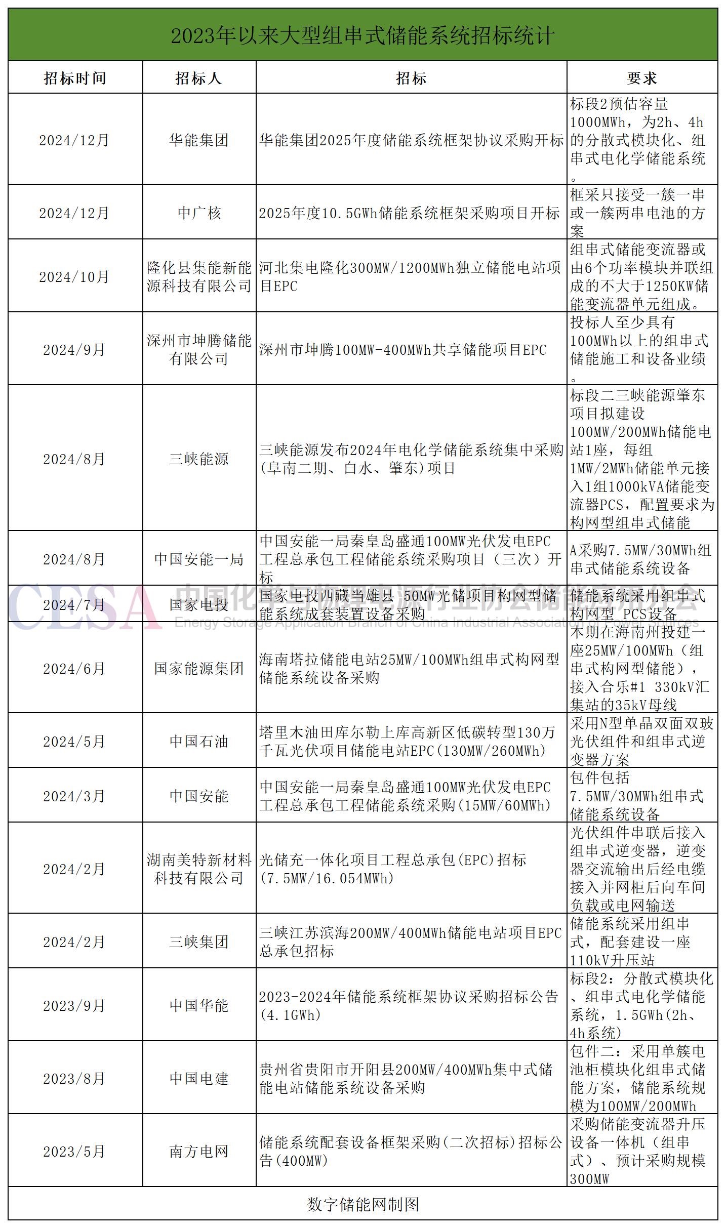 進(jìn)入2024年,央國(guó)企大的招采項(xiàng)目對(duì)組串式儲(chǔ)能技術(shù)的認(rèn)可和需求逐漸提升。