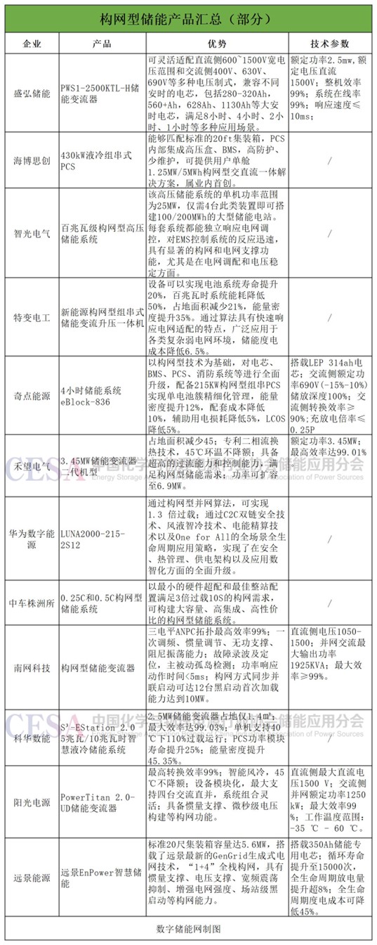 其中,南瑞繼保、易事特、新風(fēng)光、智光儲能、為光能源等主要聚焦高壓直掛儲能系統(tǒng);陽光電源、華為數(shù)字能源、科華數(shù)能等均具備低壓構(gòu)網(wǎng)能力。