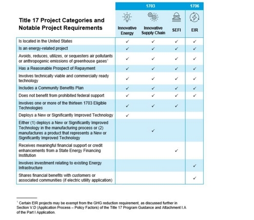 圖1 Title 17清潔能源融資計(jì)劃項(xiàng)目類別要求