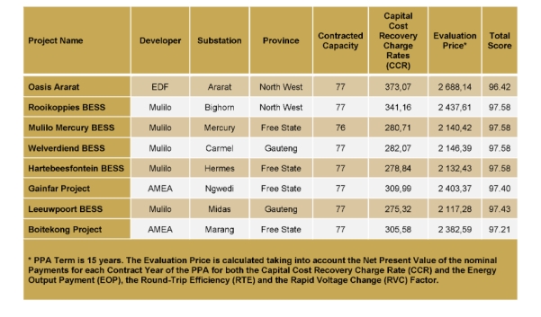 中國(guó)儲(chǔ)能網(wǎng)訊:日前,南非電力和能源部宣布了電池儲(chǔ)能采購(gòu)計(jì)劃(BESIPPPP)第二輪招標(biāo)中標(biāo)者。