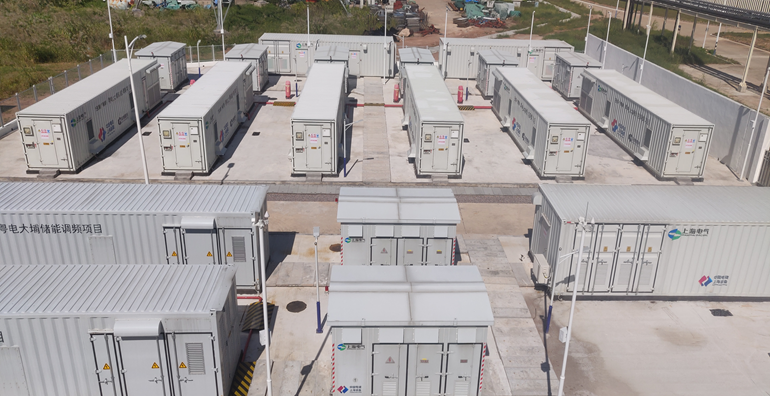 比如廣東陽西發(fā)電有限公司#5、#6號機(jī)組(2x1240MW)火儲調(diào)頻項目的火電單體機(jī)組容量為1240MW,儲能系統(tǒng)容量為55MW/55MWh,是目前國內(nèi)火儲調(diào)頻項目里單體最大的項目,同時也是我國第一個采用280Ah 電池1C液冷系統(tǒng)的火儲調(diào)頻項目。