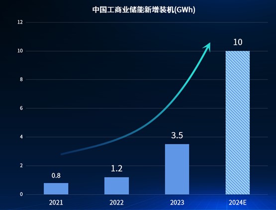 2022年工商業(yè)儲能新增裝機約為1.2GWh,而2023年新增裝機大幅增長,達3.5GWh左右,增幅超190%。