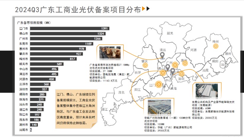 從去年到今年,工商儲項目的備案一直在以一個較快的速度增長,以廣東為例,今年前三季度廣東工商業(yè)光伏備案共11400個項目,規(guī)模合約12120MW,相較于去年同期大幅增長了93.8%,截至三季度末,廣東各月備案規(guī)模均超去年同期。