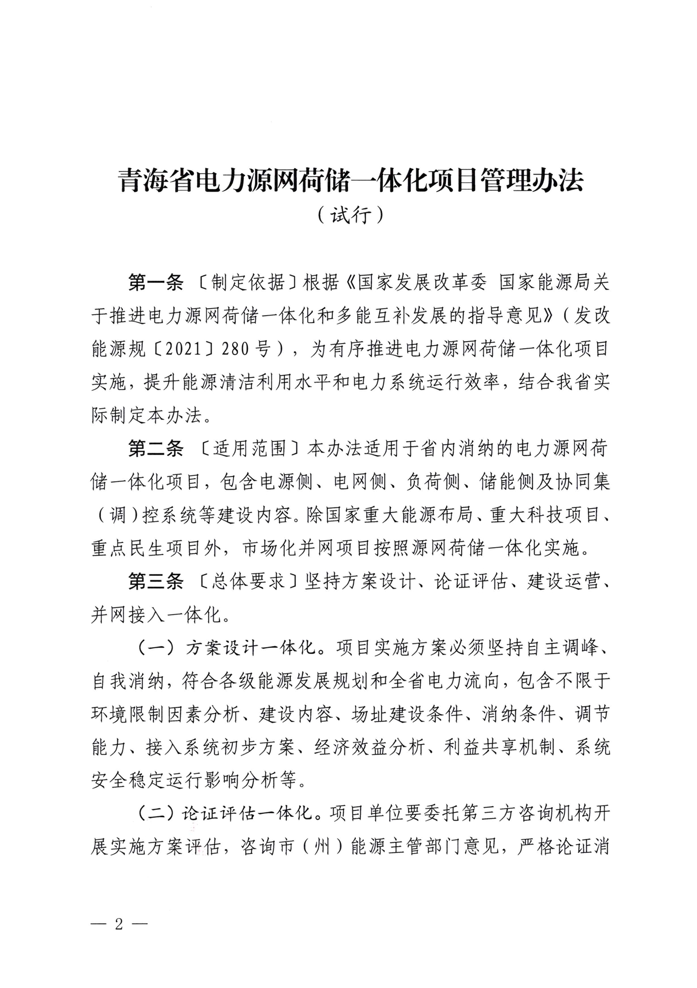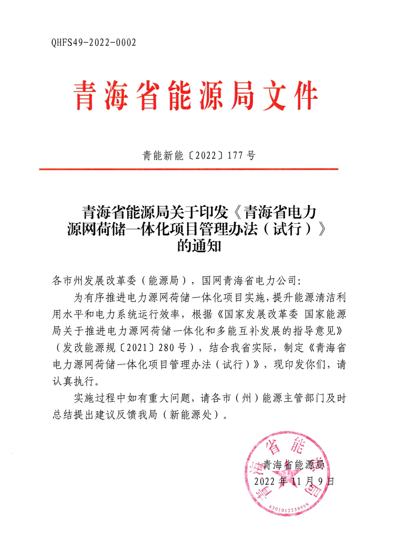 《青海省電力源網(wǎng)荷儲一體化項目管理辦法(試行)》印發(fā)