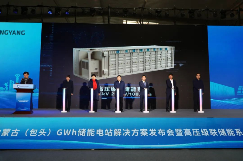 隨著儲能電站從MWh時代邁向GWh時代,明陽集團此次推出的35kV高壓級聯(lián)儲能系統(tǒng)憑借其領先的技術優(yōu)勢,成為GWh儲能電站的最優(yōu)解決方案之一。該系統(tǒng)具備單機容量大、能量轉換效率高、系統(tǒng)協(xié)調控制簡單、安全性高、造價低、電池壽命長以及電網(wǎng)支撐能力強等多重優(yōu)點。此次下線的產(chǎn)品要針對“三北地區(qū)”以及“沙戈荒”大基地新型應用場景進行研發(fā),能為電網(wǎng)提供更強的調峰調頻能力,更好地支撐新能源發(fā)電的接入和電網(wǎng)的穩(wěn)定運行。