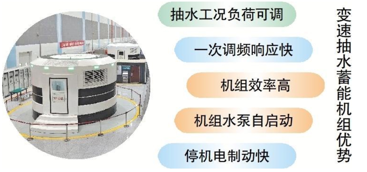 ●首次在國內(nèi)采用大型變速抽水蓄能機(jī)組技術(shù) 變速抽水蓄能機(jī)組能夠更好地適應(yīng)新能源發(fā)電的隨機(jī)性和波動(dòng)性,精準(zhǔn)配合新能源消納,增強(qiáng)調(diào)峰能力。電站兩臺(tái)變速機(jī)組投產(chǎn)發(fā)電,填補(bǔ)了國內(nèi)大型交流勵(lì)磁變速抽水蓄能機(jī)組應(yīng)用空白,為抽水蓄能行業(yè)技術(shù)再升級(jí)、精準(zhǔn)配合新能源出力波動(dòng)調(diào)節(jié)開辟了新思路。