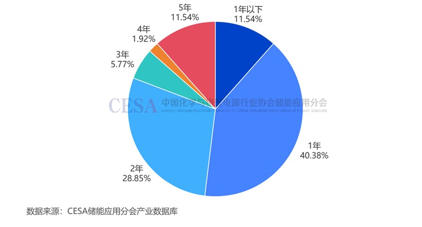 圖1 2024年儲(chǔ)能容量租賃不同年限項(xiàng)目數(shù)占比