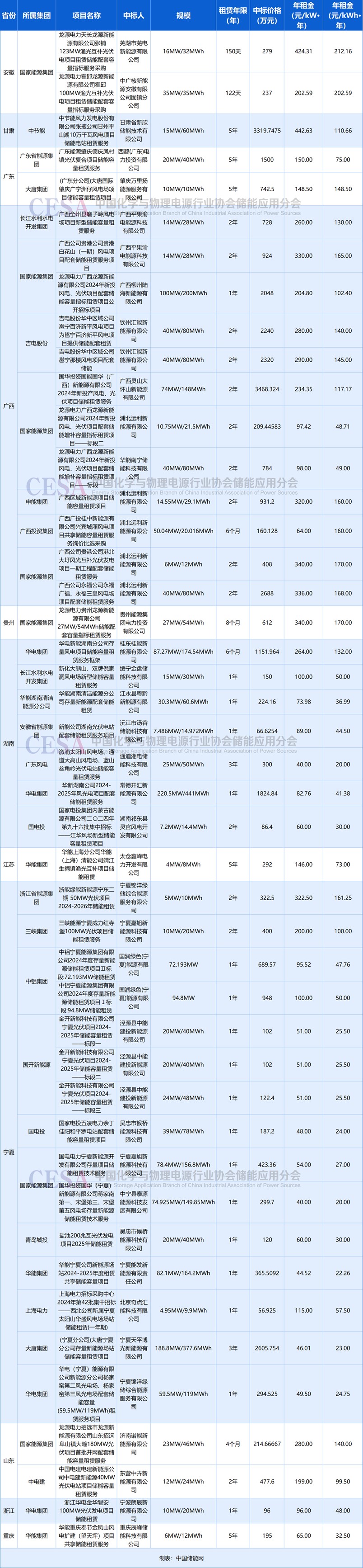 表2 2024年部分儲(chǔ)能容量租賃采招落地項(xiàng)目