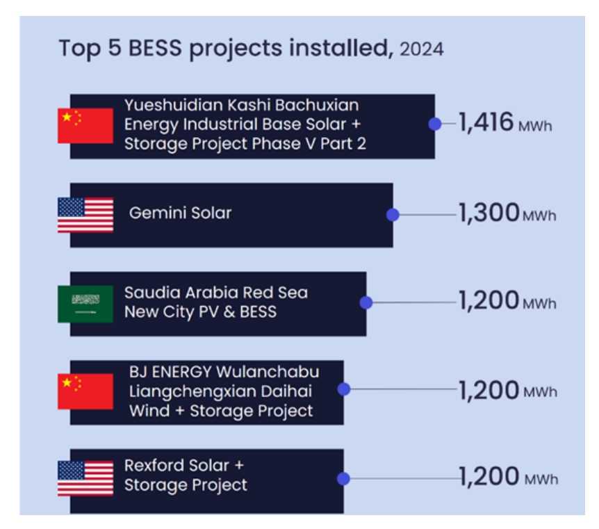 圖3 2024年全球各地部署的5個(gè)規(guī)模最大可再生能源+儲(chǔ)能項(xiàng)目
