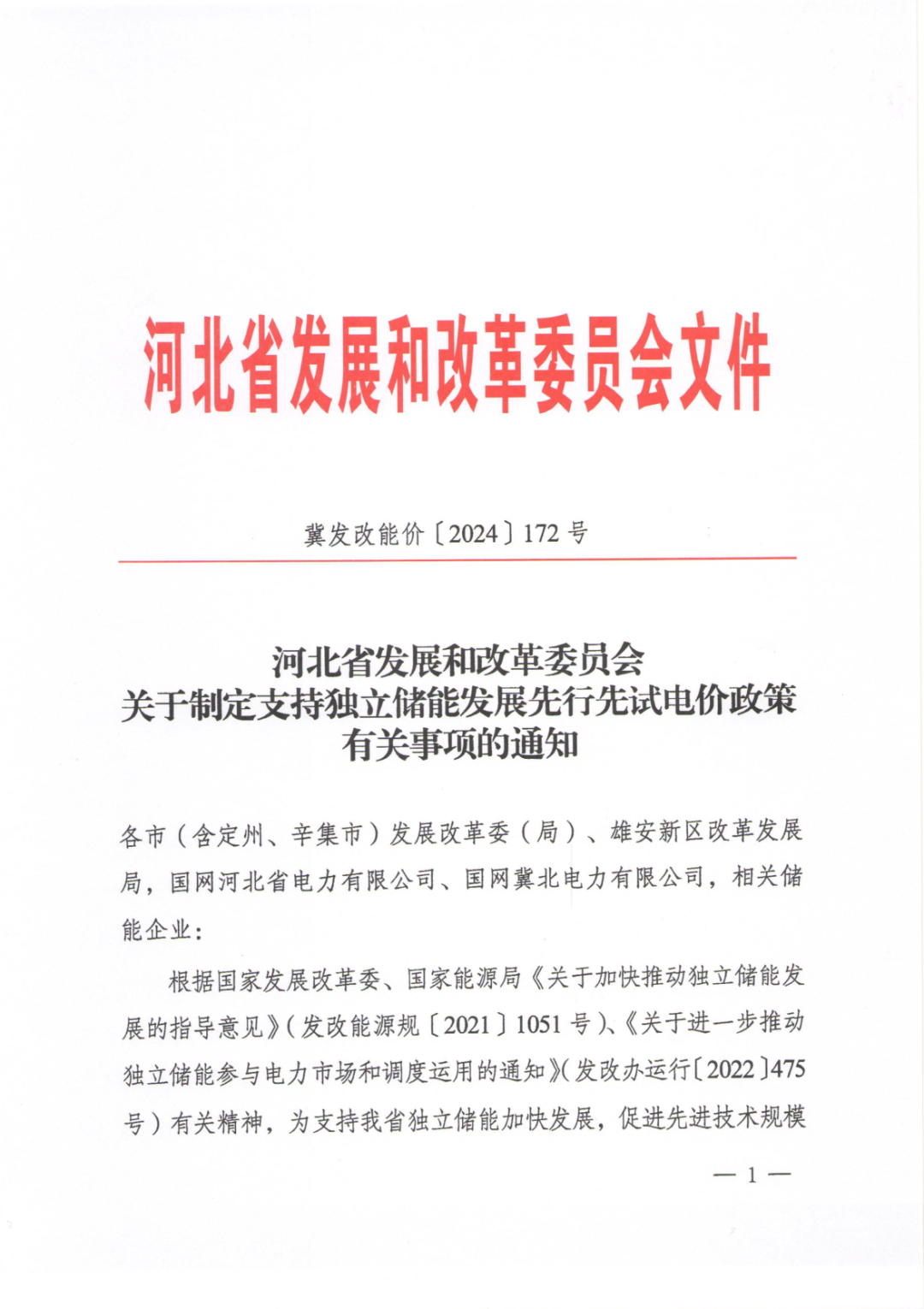 4.建立獨立儲能容量電價機(jī)制。適用范圍方面,“容量原則上不低于10萬千瓦、滿功率持續(xù)放電市場不低于4小時,2024年1月1日前省級批復(fù)的電網(wǎng)側(cè)獨立儲能項目可放寬至不低于2小時”。容量規(guī)模方面,河北南網(wǎng)、冀北電網(wǎng)分別確定,“河北南網(wǎng)300萬千瓦,冀北電網(wǎng)270萬千瓦”。電價標(biāo)準(zhǔn)方面,明確容量電價上限為100元/千瓦·年;24年5月31日前并網(wǎng)發(fā)電的,年度容量電價按100元/千瓦(含稅、下同);24年6月1日至9月30日并網(wǎng)發(fā)電的,容量電價逐月退坡,年度容量電價分別為90元/千瓦、80元/千瓦、70元/千瓦、60元/千瓦;24年10月1日至12月31日并網(wǎng)發(fā)電的,年度容量電價按50元/千瓦。容量認(rèn)定方面,要求“按月申報次月分日可用充、放電容量及時長,日前可根據(jù)實際運行情況修改”。考核機(jī)制方面,無法達(dá)到申報容量和時長的,“月內(nèi)發(fā)生兩次扣減當(dāng)月容量電費的10%,發(fā)生三次扣減50%,發(fā)生四次及以上扣減100%”。費用分?jǐn)偡矫?/strong>,明確“獨立儲能電站容量電費納入系統(tǒng)運行費,由全體工商業(yè)用戶按月分?jǐn)偂薄?