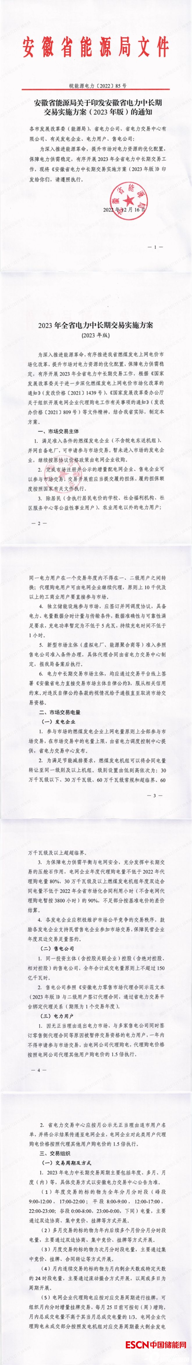 2023 年電力中長期交易周期主要包括年度、多月、月度(內(nèi))等,具體交易方式以安徽電力交易中心公告為準。