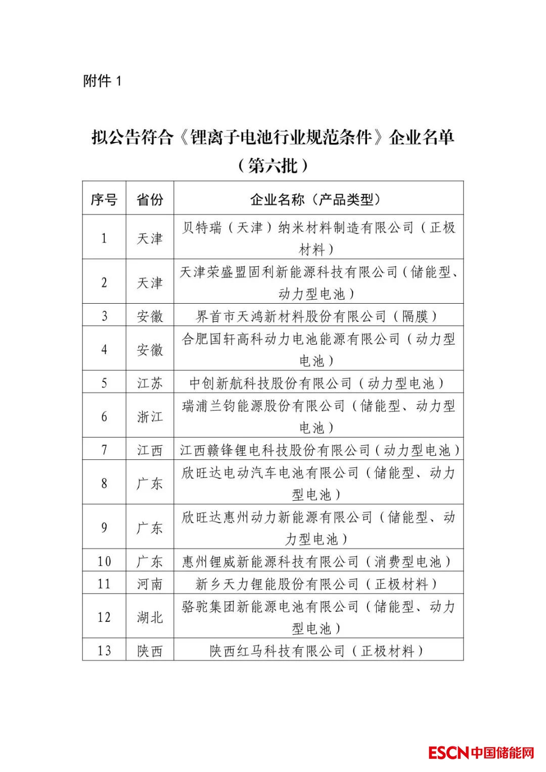 1.擬公告符合《鋰離子電池行業(yè)規(guī)范條件》企業(yè)名單(第六批)