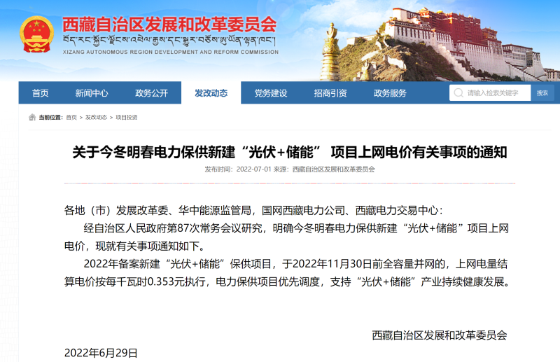 關(guān)于今冬明春電力保供新建“光伏+儲(chǔ)能” 項(xiàng)目上網(wǎng)電價(jià)有關(guān)事項(xiàng)的通知
