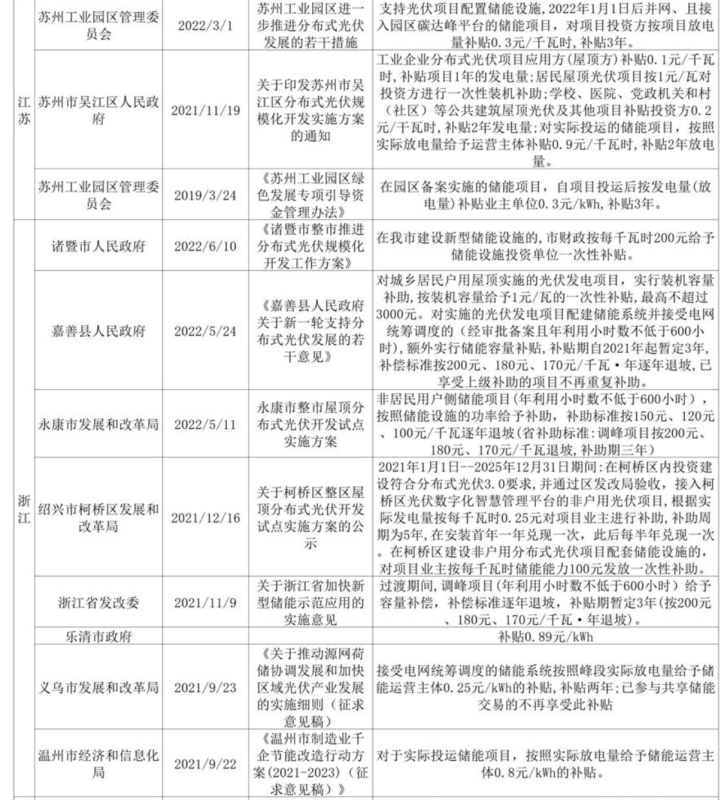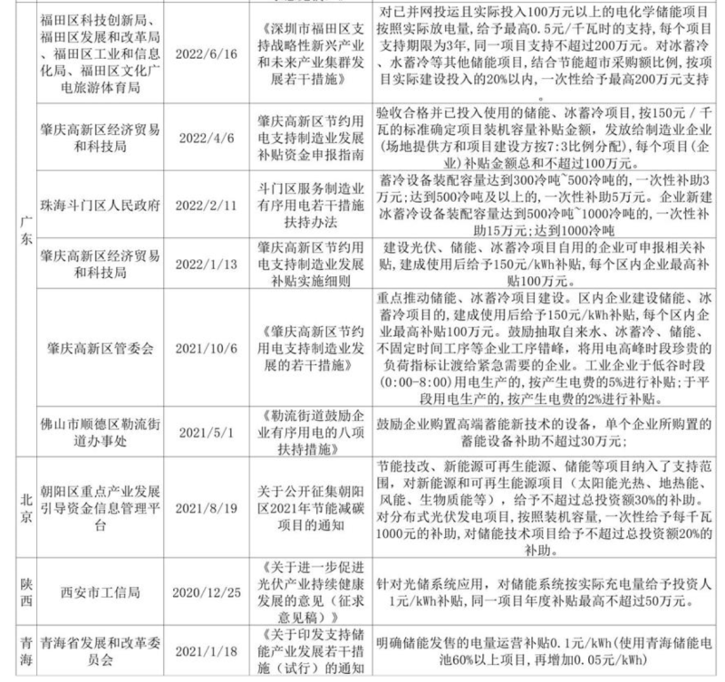 儲能電站運(yùn)營主體0.3元//kWh補(bǔ)貼,同一項(xiàng)目年度最高補(bǔ)貼100萬元。補(bǔ)貼項(xiàng)目為自發(fā)文之日至2023年12月31日期間投產(chǎn)的項(xiàng)目,單個項(xiàng)目補(bǔ)貼年限為5年。