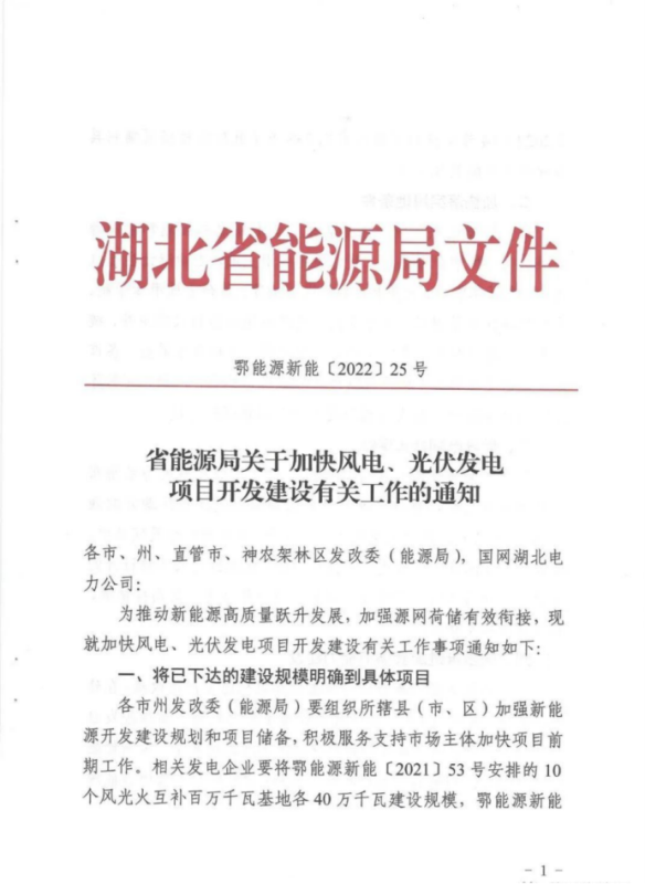 中國儲能網(wǎng)訊:5月26日,湖北省能源局發(fā)布了《省能源局關于加快風電、光伏發(fā)電項目開發(fā)建設有關工作》的通知。
