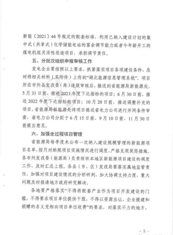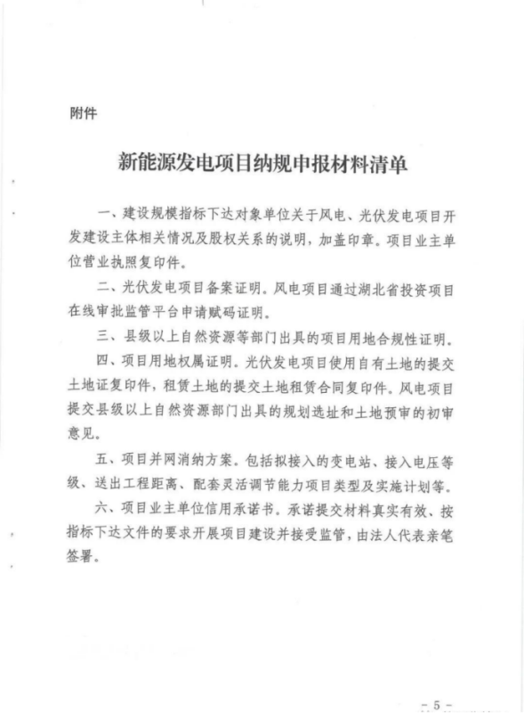 時間安排上,發(fā)電企業(yè)抓緊落實項目各項建設條件,及時將相關材料(見附件)上傳到“湖北能源信息管理系統(tǒng)”。項目所在市州縣發(fā)改委(局)逐級審核后,推送到省能源局新能源處。5月31日前,推送2021年度下達指標的項目;6月30日前推送2022年度下達指標的項目;10月20日前,推送調整補充的項目。