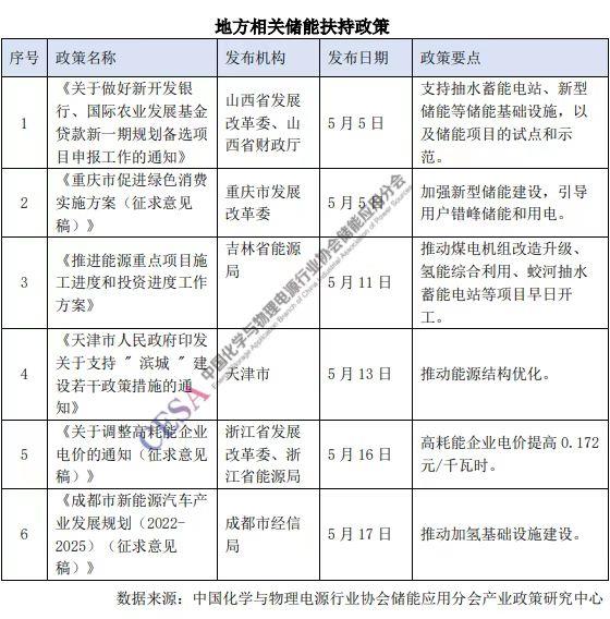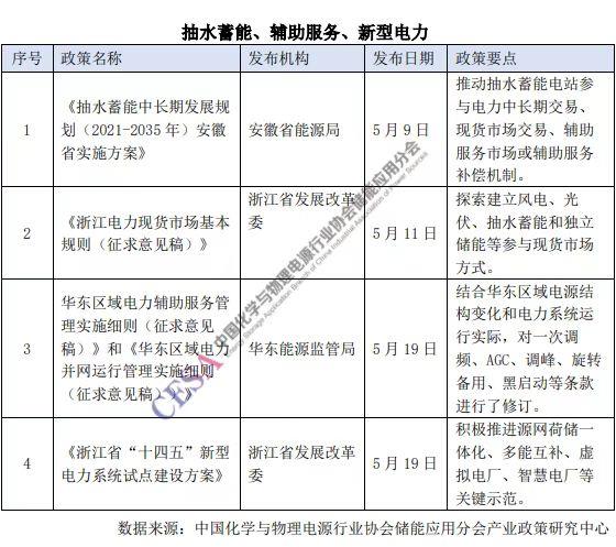 5月儲能相關政策共計22項,主要涉及儲能電站安全、“十四五”能源規(guī)劃、儲能試點示范項目、抽水蓄能、輔助服務、新型電力、新能源配儲能,以及地方相關儲能扶持政策等方面。