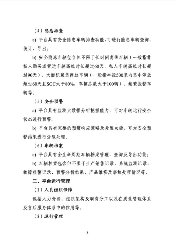 (十四)深化事故調(diào)查分析。企業(yè)要加強(qiáng)事故報(bào)告和深化調(diào)查分析,當(dāng)車輛發(fā)生起火燃燒、涉嫌失控等安全事故時(shí),應(yīng)及時(shí)上報(bào)并積極配合開展事故調(diào)查,深入研判事故原因,按照相關(guān)要求及時(shí)、完整、準(zhǔn)確提交車輛事故相關(guān)數(shù)據(jù)、事故分析報(bào)告。