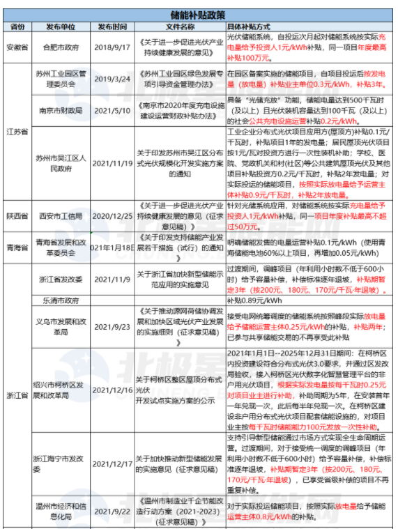 2021年截止到目前共有20省市明確提出來(lái)儲(chǔ)能補(bǔ)貼。