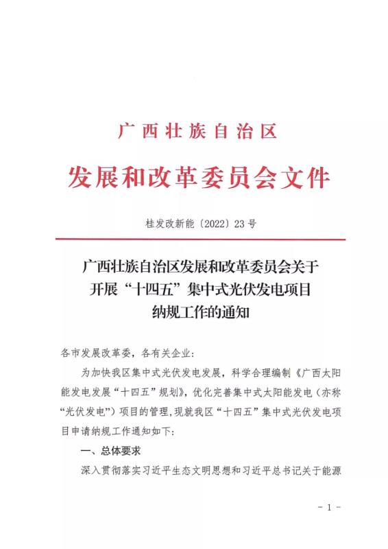 廣西啟動(dòng)“十四五”光伏納規(guī)工作,未入庫(kù)項(xiàng)目不得參與競(jìng)爭(zhēng)配置