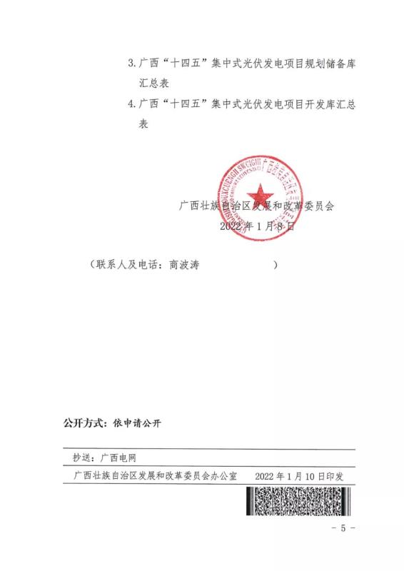 中國(guó)儲(chǔ)能網(wǎng)訊:1月8日,廣西發(fā)改委印發(fā)《開(kāi)展"十四五"集中式光伏發(fā)電項(xiàng)目納規(guī)工作的通知》,就建立集中式光伏規(guī)劃項(xiàng)目庫(kù)給出指導(dǎo)意見(jiàn)。
