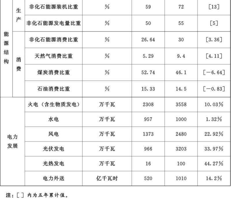——能源清潔化水平明顯提高??稍偕茉窗l(fā)電裝機占電力總裝機超過65%,非化石能源占能源消費總量比重達到30%,可再生能源發(fā)電量達到全社會用電量的60%左右。完成可再生能源電力消納責任權重50%以上和非水電可再生能源電力消納責任權重23%目標任務。