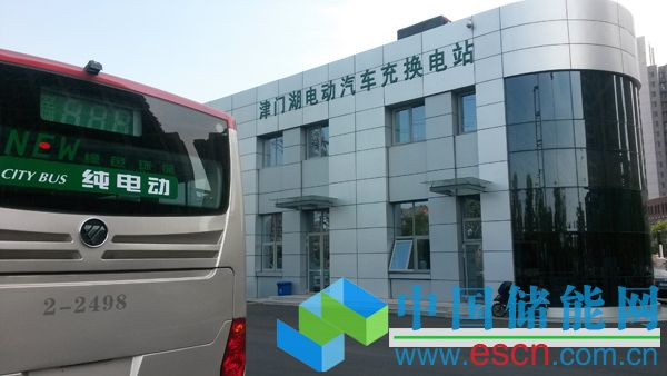 一輛純電動(dòng)公交車即將駛?cè)虢蜷T湖電動(dòng)汽車充換電站