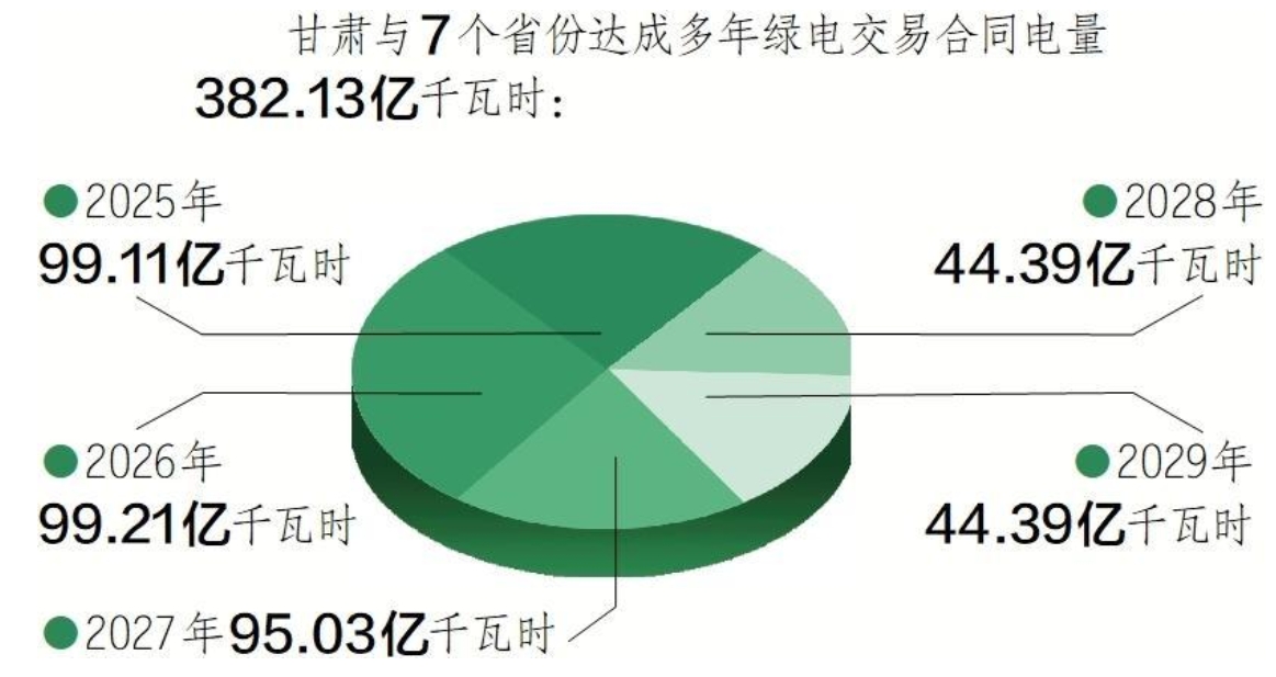 中國儲(chǔ)能網(wǎng)訊:1月17日從甘肅電力交易中心有限公司獲悉,2025年甘肅與北京、上海、天津、安徽、四川、重慶、陜西7個(gè)省份達(dá)成多年綠電交易合同電量382.13億千瓦時(shí)。其中,2025年99.11億千瓦時(shí),外送交易規(guī)模居國家電網(wǎng)有限公司系統(tǒng)第一位,2026年99.21億千瓦時(shí)、2027年95.03億千瓦時(shí)、2028年44.39億千瓦時(shí)、2029年44.39億千瓦時(shí)。