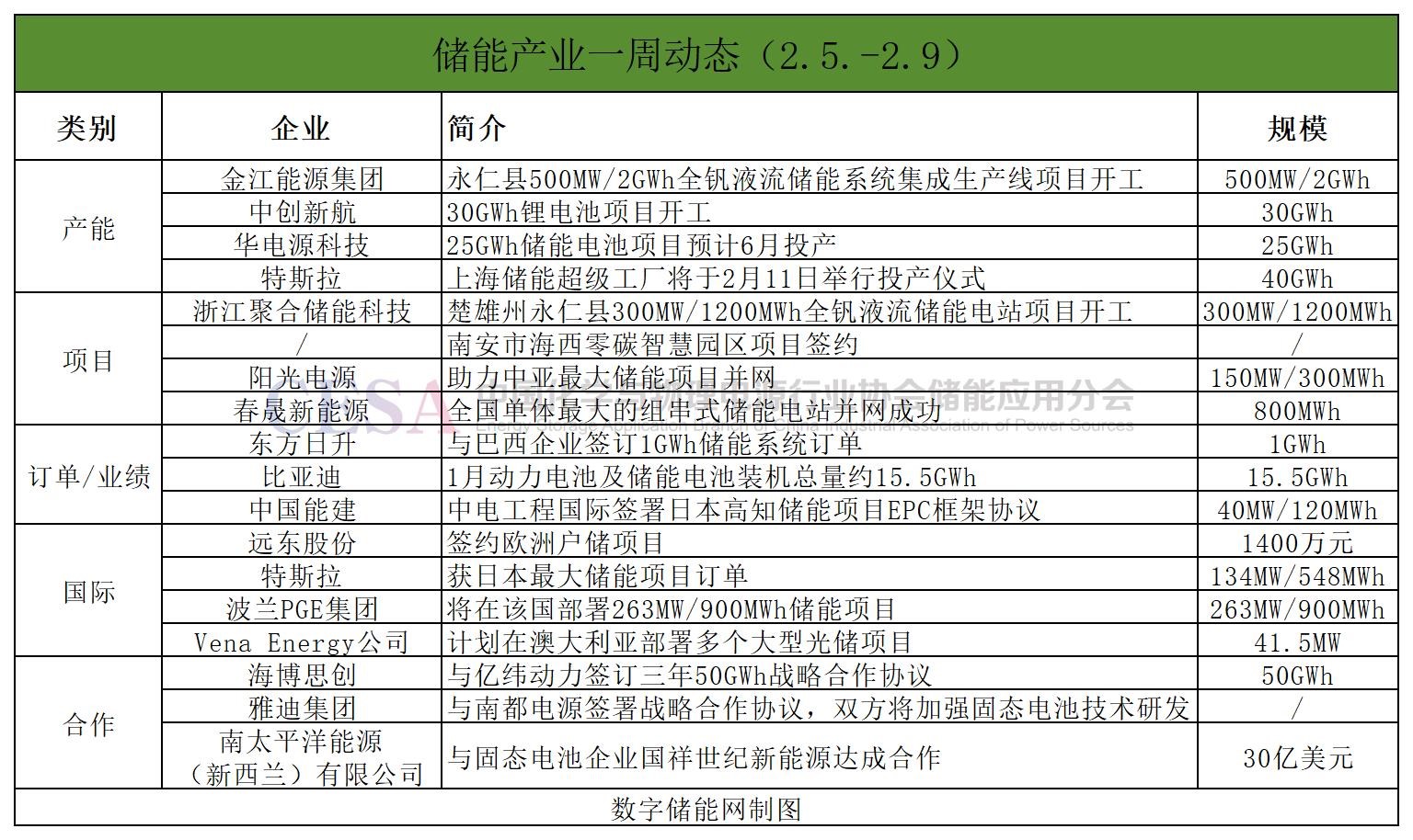 產(chǎn)能方面,永仁縣500MW/2GWh全釩液流儲能系統(tǒng)集成生產(chǎn)線開工;中創(chuàng)新航30GWh鋰電池項目開工;特斯拉上海儲能超級工廠將于2月11日舉行投產(chǎn)儀式;華電源科技25GWh儲能電池項目預計6月投產(chǎn)。