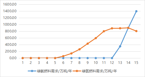 圖1 綠氫燃料替代需求(萬(wàn)噸/年)