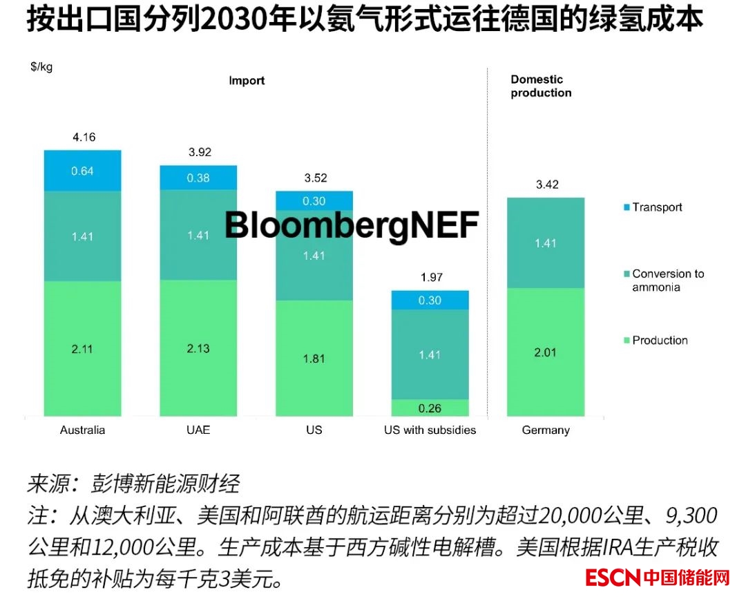 2030年阿聯(lián)酋向德國出口綠氨的價格相比美國獲補(bǔ)貼出口價格的溢價幅度