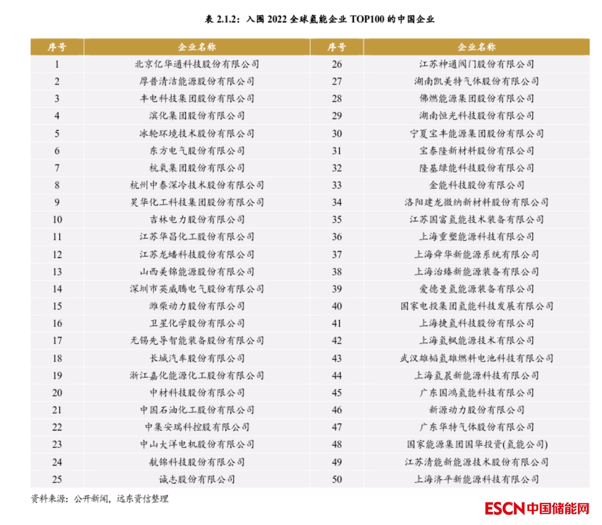 氫能產(chǎn)業(yè)鏈分別為上游制氫企業(yè)、中游儲(chǔ)運(yùn)商以及下游用氫企業(yè),包括加氫站的建設(shè)運(yùn)營(yíng)商,氫能源汽車(chē)是目前我國(guó)氫能應(yīng)用最主要的領(lǐng)域,或也是未來(lái)氫能產(chǎn)業(yè)最重要的應(yīng)用發(fā)展方向。2022 年 11 月 16 日,第二屆氫能?chē)?guó)際(中國(guó)·南海)主題峰會(huì)在線上舉行。在會(huì)上發(fā)布了 2022 全球氫能企業(yè) TOP100 榜單,評(píng)分方式主要采用定性分析 和定量分析相結(jié)合的方法進(jìn)行研究,最終評(píng)選出國(guó)外50家氫能、國(guó)內(nèi)50家氫能企業(yè)進(jìn)入“2022全球氫能企業(yè)TOP100” 榜單。