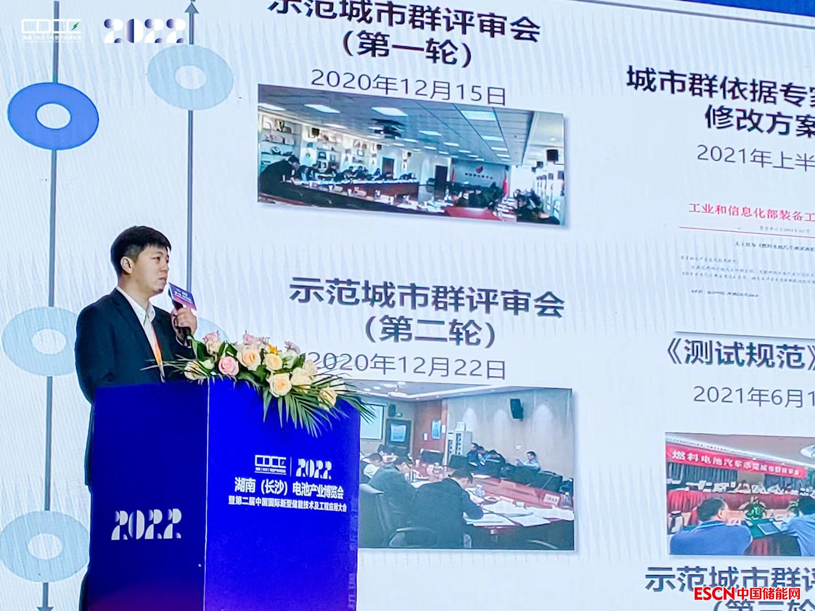 從去年3月份把雙碳目標寫入到政府工作報告之后,純電動汽車或者是燃料電池汽車在這個過程當中發(fā)揮著不可替代的角色,特別是燃料電池汽車有自己的巨大的優(yōu)勢,燃料電池汽車有一個特點,不像純電動汽車一樣,依靠電網(wǎng)就可以直接進行應用,而是牽涉到了氫能產(chǎn)業(yè)鏈的推廣和發(fā)展。車的上游包括關(guān)鍵材料、零部件、系統(tǒng)的集成,加氫站的上游包括氫氣的制、儲、運、加的各個環(huán)節(jié),產(chǎn)業(yè)鏈非常長。所以國家也是發(fā)布了很多相關(guān)的政策支持這兩個產(chǎn)業(yè)協(xié)同的發(fā)展。中汽中心作為燃料電池汽車示范應用的一個第三方支撐機構(gòu),從2018年就啟動了這項政策的研究,在2020年正式發(fā)布,2021年大家應該有所耳聞,目前已經(jīng)形成了北上廣、河南、河北5個燃料電池汽車的示范城市群。