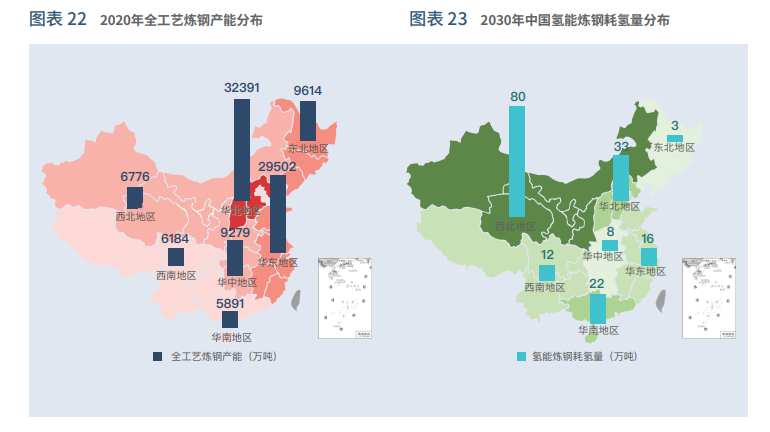 2030年前,華北和華南地區(qū)依托本地局部地區(qū)優(yōu)勢電力資源建成綠色制氫基地,服務(wù)以河鋼和寶武等大型鋼鐵企業(yè)為依托的氫能煉鋼和冶金基地,同時(shí)輻射以北京-張家口和廣州佛山為核心的氫燃料電池汽車產(chǎn)業(yè)和示范項(xiàng)目集群。