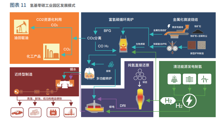 由于中國鋼鐵生產(chǎn)中用于提供高溫的燃料燃燒造成的排放和以焦炭為主要還原劑的反應(yīng)過程排放,難以通過電氣化的方式實(shí)現(xiàn)完全脫碳,且能效提升和廢鋼利用等方式的減排潛力有限,對(duì)因此利用可再生氫替代焦炭進(jìn)行直接還原鐵生產(chǎn)并配加電爐煉鋼的模式將成為鋼鐵行業(yè)完全脫碳最關(guān)鍵、最具前景的解決方案之一。