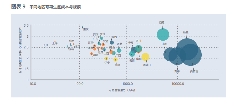 傳統(tǒng)產(chǎn)業(yè)轉(zhuǎn)型升級(jí)的需求和可再生資源自然稟賦相匹配的區(qū)域,將成為可再生氫的重要發(fā)展基地,裝機(jī)規(guī)模相對(duì)較大,可獲取較低成本的可再生氫,如西北、西南、東北地區(qū)。
