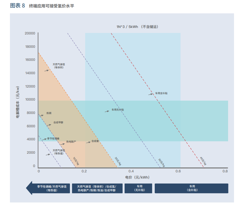 對(duì)于工業(yè)應(yīng)用場景而言,考慮相關(guān)儲(chǔ)運(yùn)成本,只有制氫電價(jià)低于0.1元、設(shè)備成本低于4000元/kW時(shí)才能具備替代可行性,對(duì)資源條件和技術(shù)水平的要求近乎苛刻。